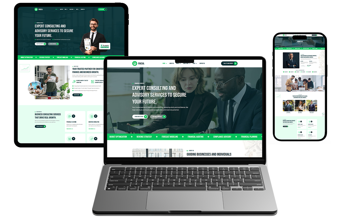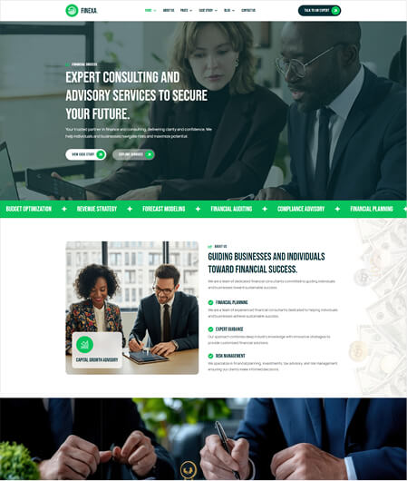 Pre-Built Home Pages for Finance & Consulting Templates.